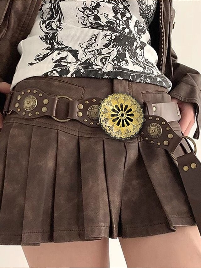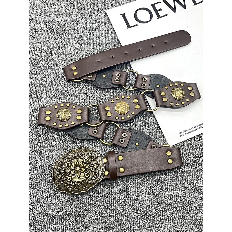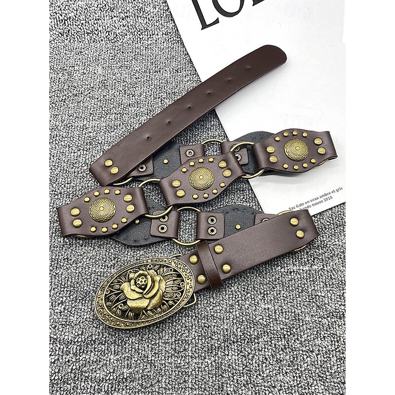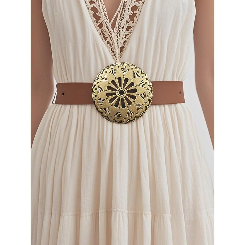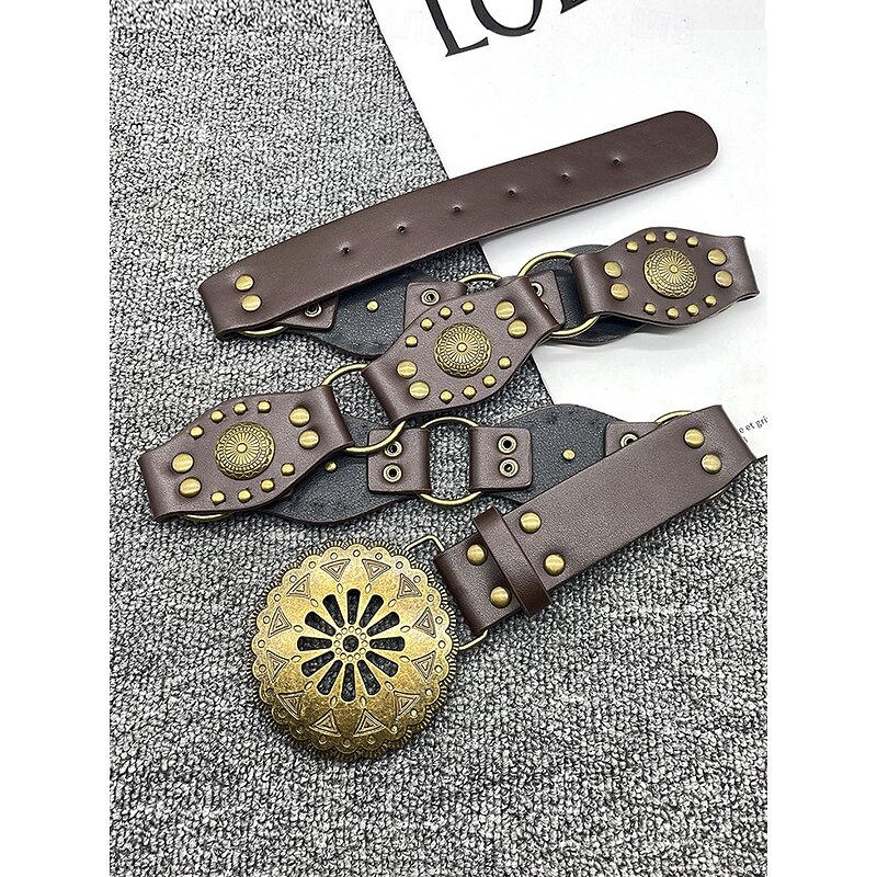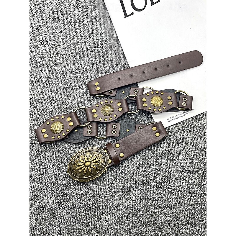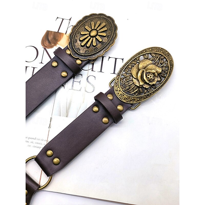 $14.99 - Women's Bohemian Western cowboy style belt with antique brass flower buckle, Adjustable tightness, Suitable for retro fashion, Casual or festival wear 2025. Shop for cheap Women's Belt online? Buy at lightinthebox.com on sale today!