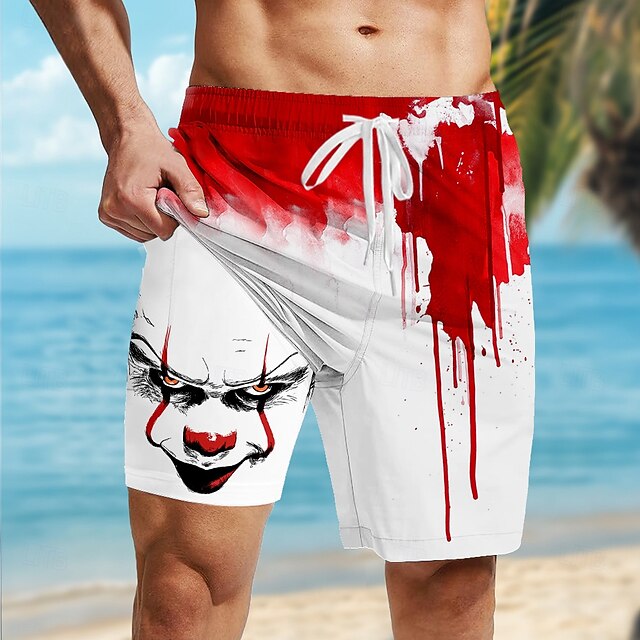 $21.99 - Men's Creepy Clown Clown Blood stains Lined Shorts 2 in 1 Board Shorts Swim Shorts Mid Waist Gothic Horror Holiday Side Pockets With Compression Liner Elastic Drawstring Waist Designer Clothing 2025. Shop for cheap Halloween Pants online? Buy at lightinthebox.com on sale today!