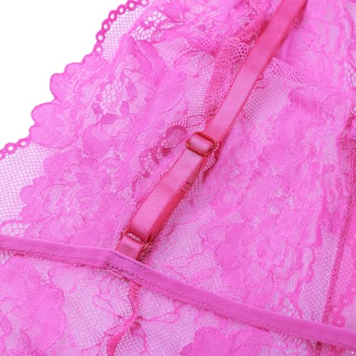 ACSUSS Men's Sheer Lace Lingerie Bodysuit Bulge Pouch Thong Leotard Sissy Crossdresser Nightwear 5