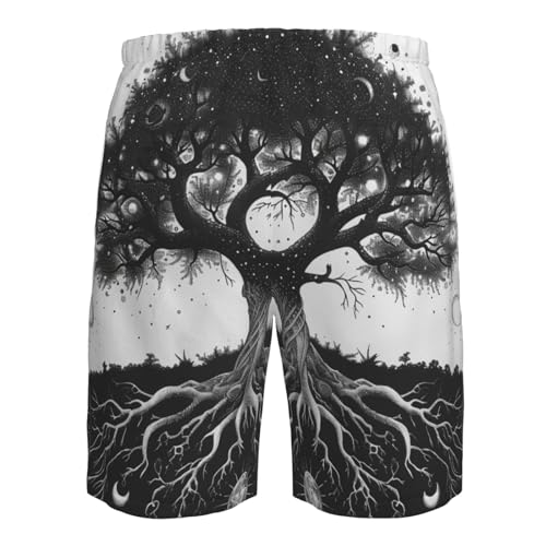 HOT ! Men's Quick Dry Swim Shorts Tree of Life Moon Sun Stars Galaxies Cosmic Mystical Beach Trunks with Pockets