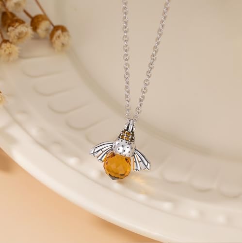 SLUYNZ Solid 925 Sterling Silver Queen Bee Choker Necklace for Women Teens Crystal Bee Pendant Necklace Mother's Day Gifts 7