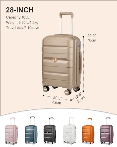 Somago 28 Inch Luggage With Spinner Wheels Hard Shell Polypropylene Suitcase with TSA Lock and YKK Zipper,Noble Golden 6