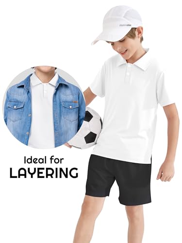 • Quick-Dry Design: the fabric boasts superior moisture-wicking capabilities, efficiently pulling sweat away from the skin and facilitating rapid evaporation; this feature makes these short-sleeve pique polos ideal for summer days and high-intensity activities, keeping the kids dry, cool, and comfortable