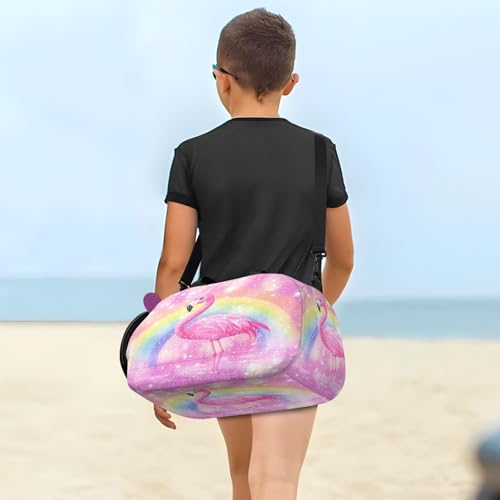 Pink Flamingo Rainbow Kids Travel Duffel Bag for Boys Girls Overnight Weekend Tote Bag with Shoes Compartment for Trip Beach Swim 5