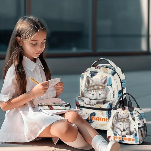 UNIKITTY Custom Kids Backpack - 3PCS School Set for Girls Boys, Cute Wolf Design With Lunch Bag, 17" Durable Large Capacity Elementary Bookbag for Children 6