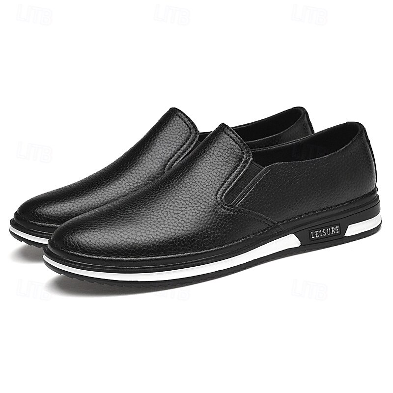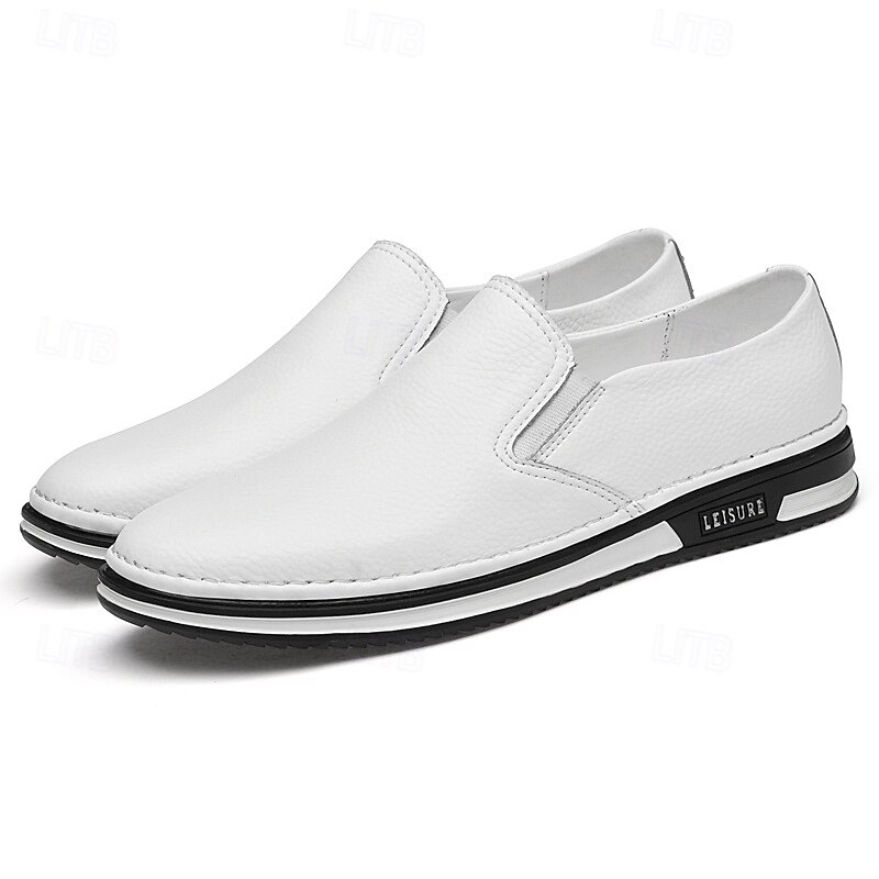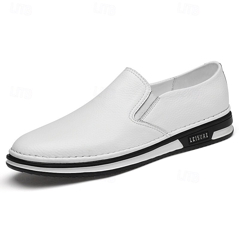 Men's Slip-On Faux Leather Sneakers, Casual White Shoes with Comfortable Rubber Sole, Stylish and Versatile Footwear for Everyday and Leisure Activities 24