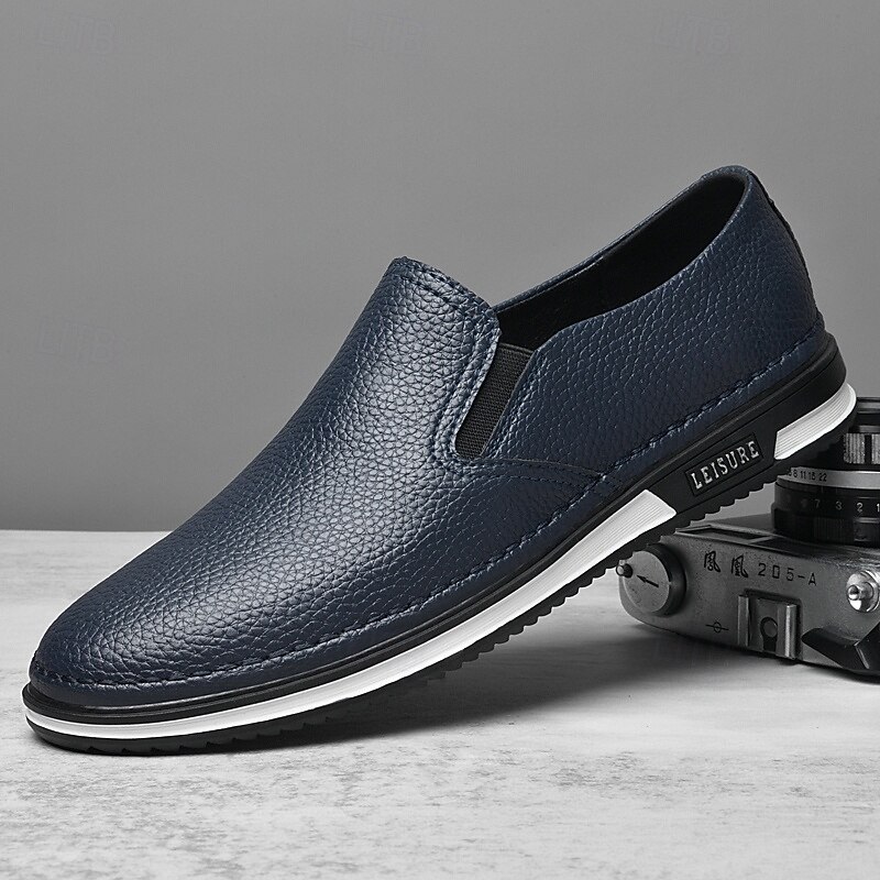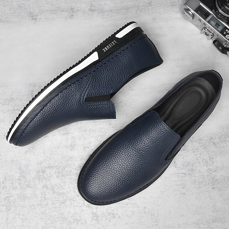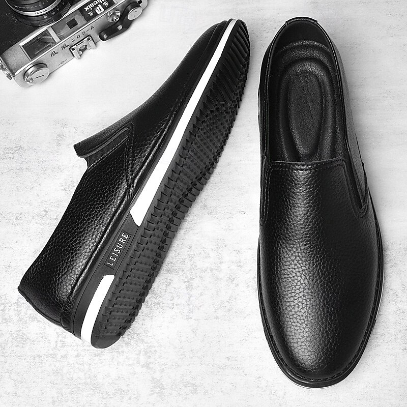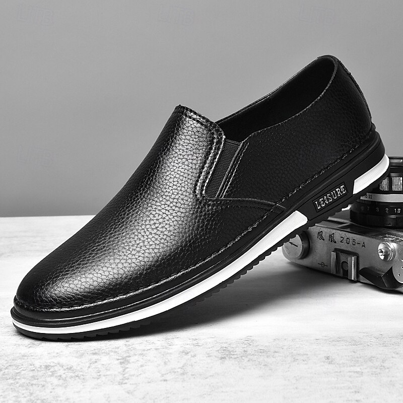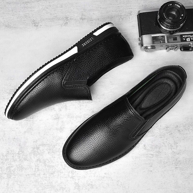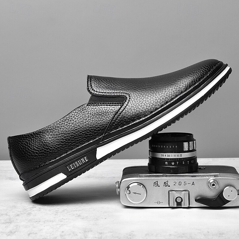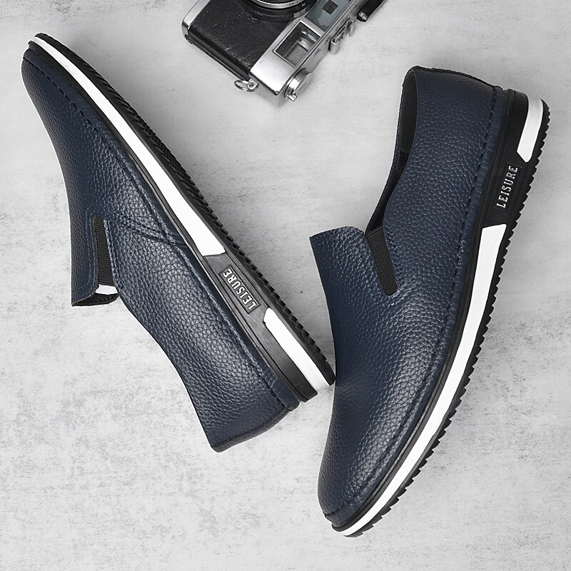 Men's Slip-On Faux Leather Sneakers, Casual White Shoes with Comfortable Rubber Sole, Stylish and Versatile Footwear for Everyday and Leisure Activities 28