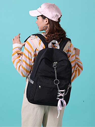 Hey Yoo Backpacks for Girls Backpack for School Bag Bookbag Aesthetic Cute School Backpack for Girls Teens (Black) 6
