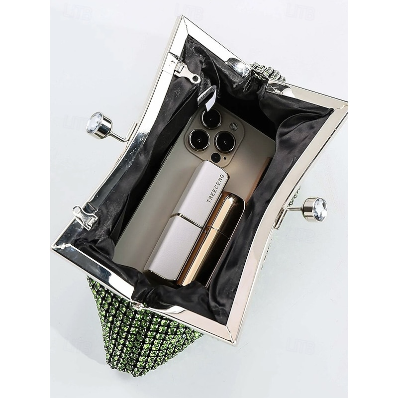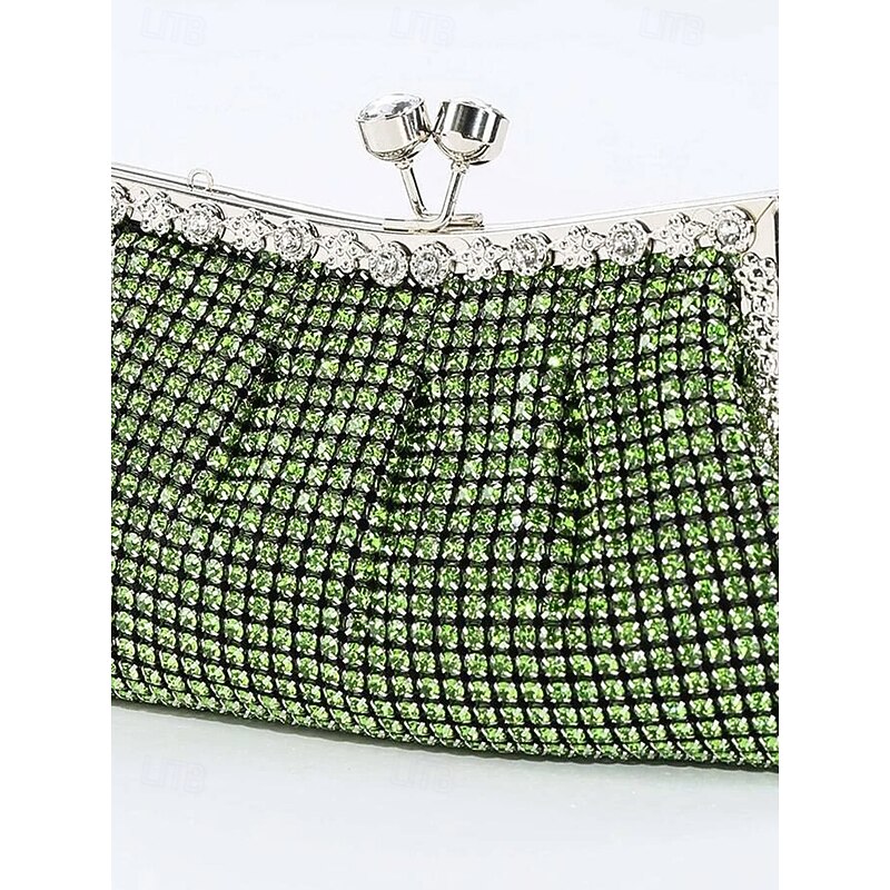 Women's Green Sage Rhinestone Clutch Purse – Vintage Crystal Evening Bag for Weddings, Parties and Formal EventsColor Silver Black Gold 7