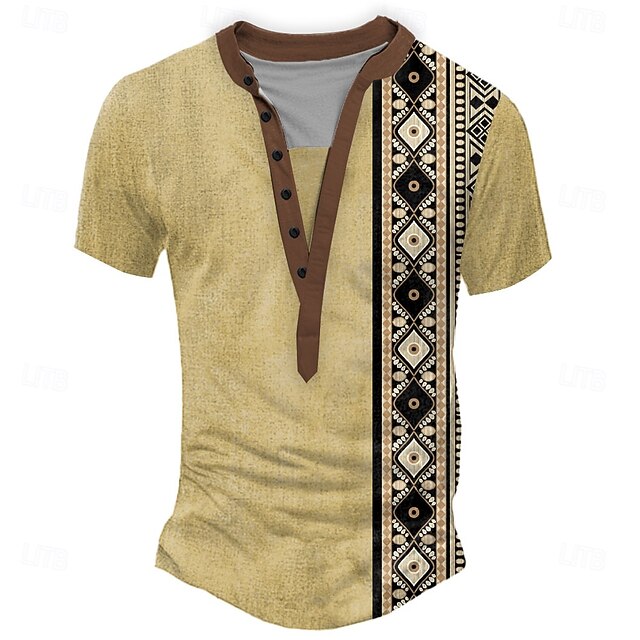 More information about Men's Tribal Ethic / African T Shirt Henley Shirt Tee Short Sleeve Designer Basic Classic Outdoor Casual Daily Summer Black Blue Yellow Khaki Henley Henley T-Shirt