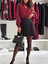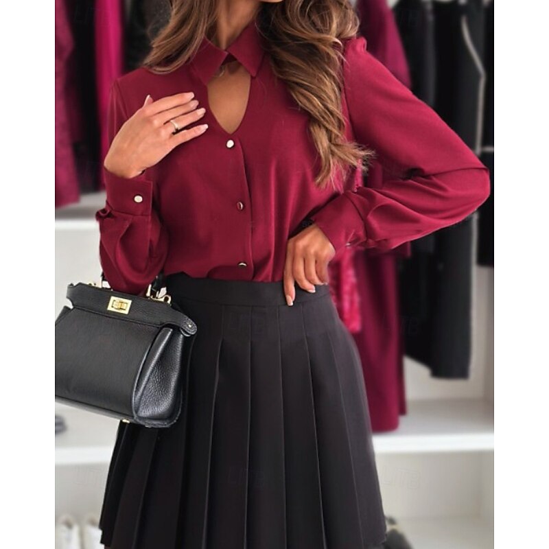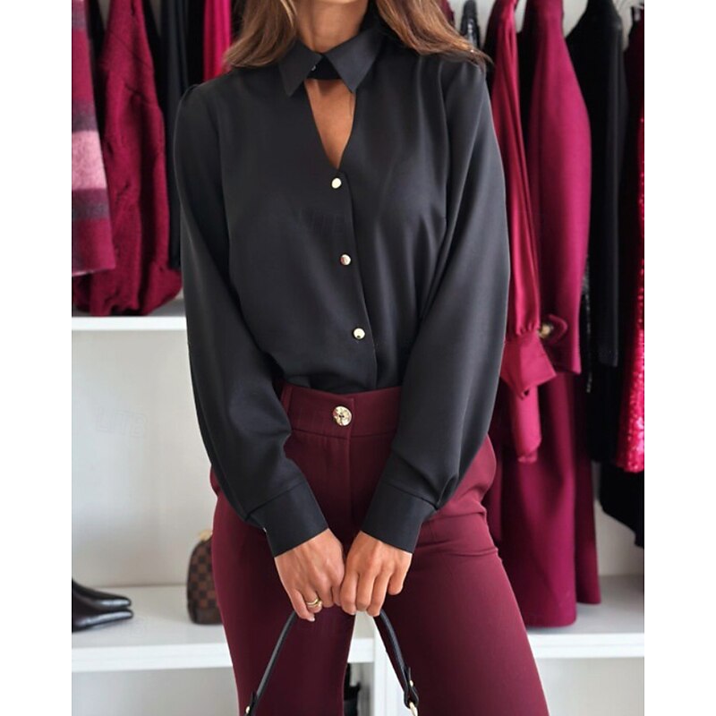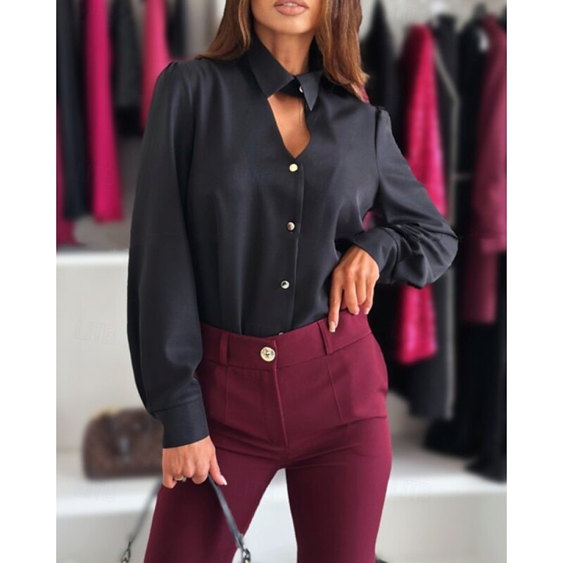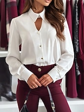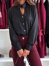 More information about Women's Shirt Dressy Blouse Plain Elegant Formal Long Sleeve Shirt Collar Regular Tops Work Holiday Going out Hollow Out Buttons Black White Wine Spring Fall