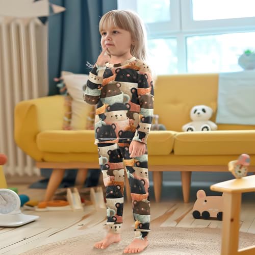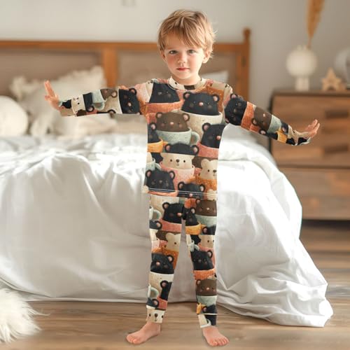 Pajama Sets Long Sleeve Cute Bears in Cups Soft Comfy Sleepwear 2 Piece PJS 3-8T 2