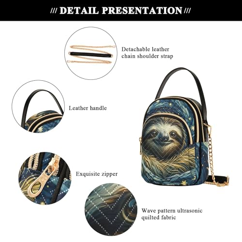 Cute Sloth Starry Night Shoulder Handbag Women Decorative Phone Bags with Chain Strap Quilted Designer Satchel Crossbody Bag 7