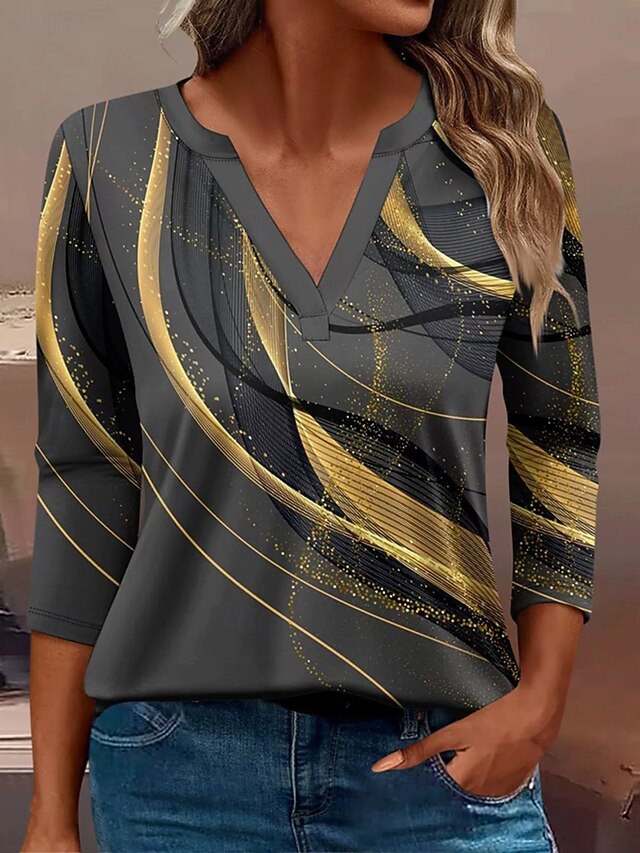 More information about Women's T Shirt Graphic Geometric Abstract Vintage Stylish Classic Long Sleeve V Neck Notched Neck Regular Tops Daily Print Blue Purple Gold Green Spring Fall Winter
