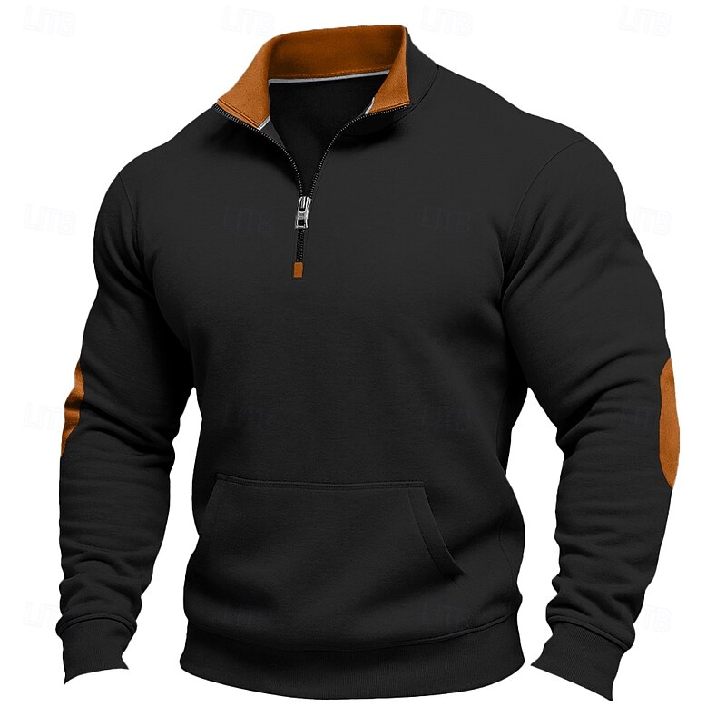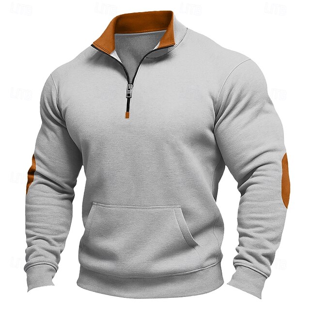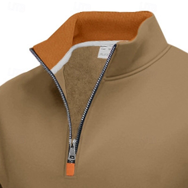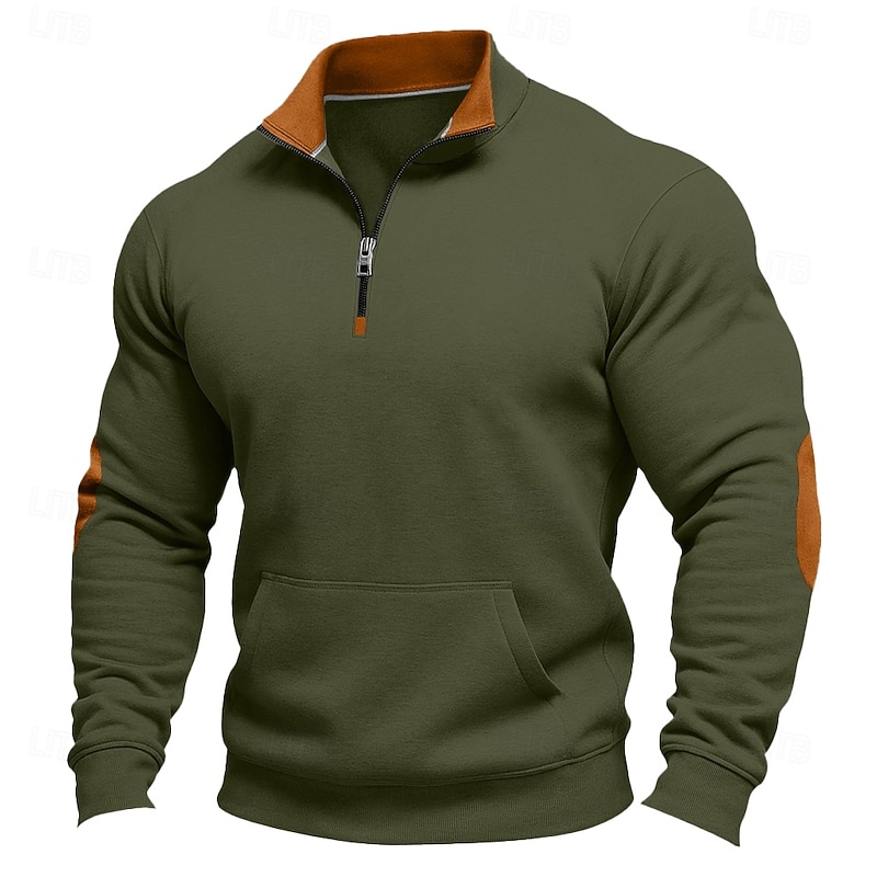 More information about Men's Sweatshirt Quarter Zip Sweatshirt Black Army Green Navy Blue Khaki Dark Gray Half Zip Plain Color Block Party Work Sports & Outdoor Streetwear Cool Casual Fall Spring & Fall Clothing Apparel