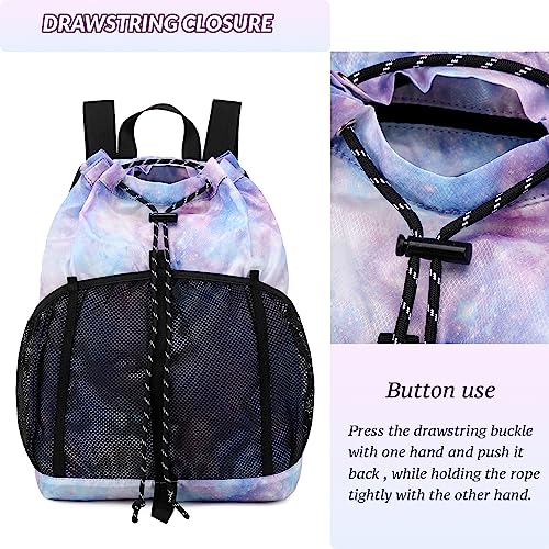 Lohol Lightweight Drawstring Backpack with Mesh Pockets for Women Men, Water Resistant String Bag for Sports Beach Swimming Camp Travel (Galaxy Purple Blue) 5