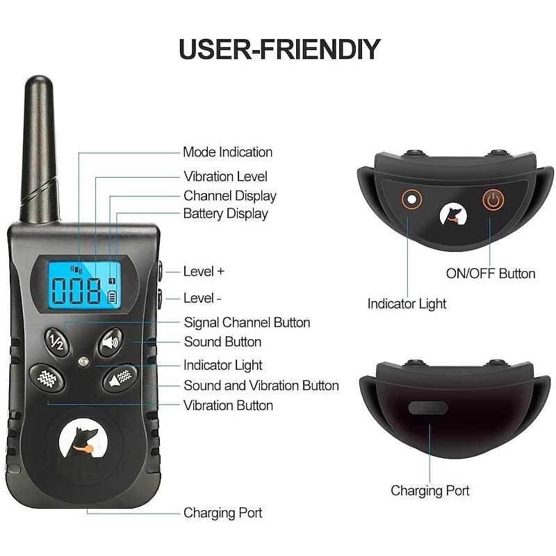 The remote has a lanyard that makes it easy to wear around the neck. With separate command buttons and large screen display for quick operation.This high-quality training collar for professional dog trainers and new pet owners.