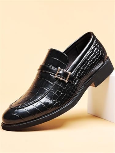 Men's Vintage Crocodile Print Strap Slip On Dress Shoes Formal Leather Loafers Business Casual Oxford 1
