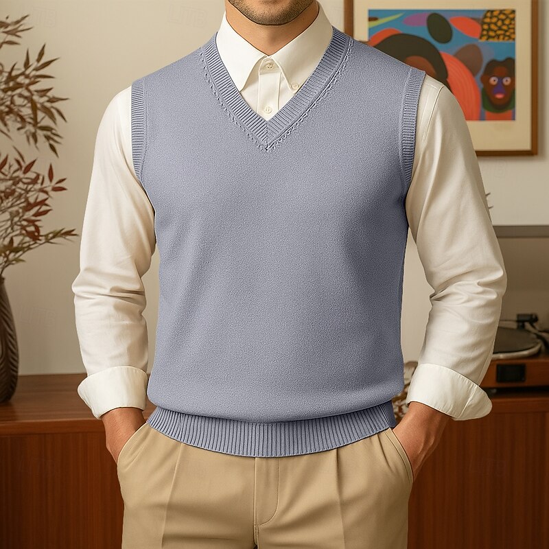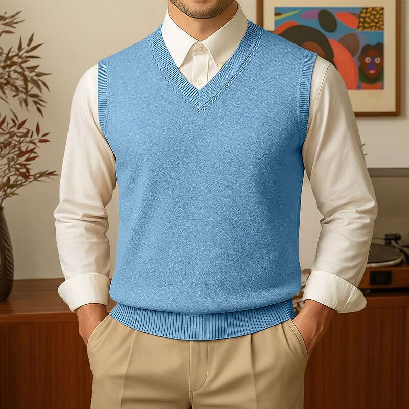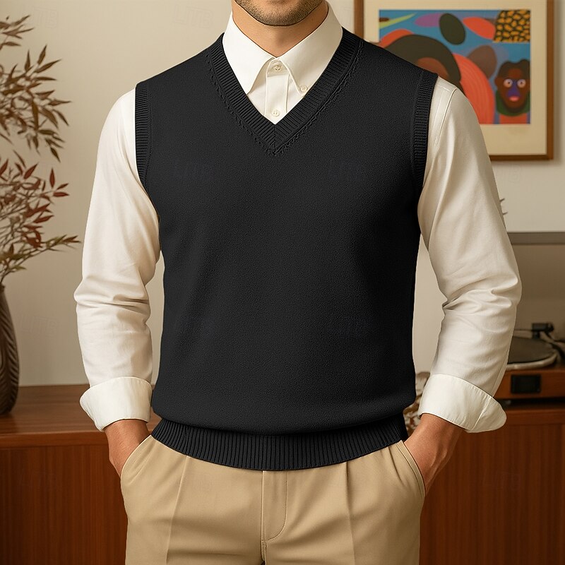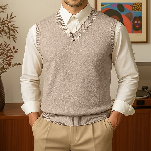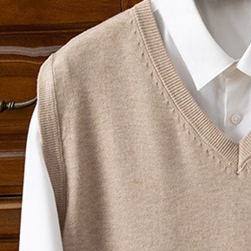 More information about Men's Sweater Sweater Vest Pullover Sweater Jumper Ribbed Knit Regular Tops Knitted Slim Fit Plain V Neck Knitwear Contemporary Casual Daily Wear Clothing Apparel Fall Camel Black S M L