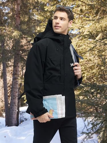 • 【Waterproof & Windproof】Men's winter waterproof Jacket with long sleeve adjustable hooded, adjustable cuff with velcro, draw cord adjustable waist and stand collar will keep your body warm in cold weather