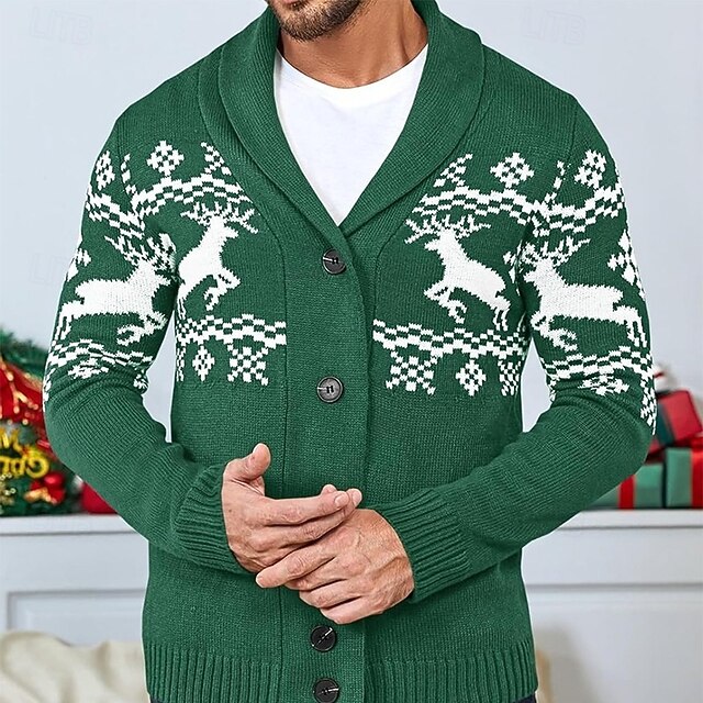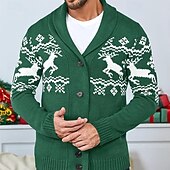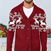 More information about Men's Ugly Christmas Sweater Christmas Sweaters Sweater Cardigan Sweater Ribbed Knit Regular Tops Knitted Plain Shawl Collar Christmas Vacation Christmas Christmas Gifts Clothing Apparel Winter Red