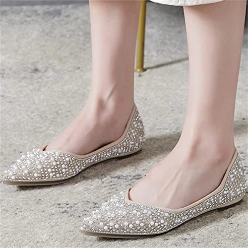 TN TANGNEST Women's Pointed Toe Flat Shoes Elegant Ballet Shoes with Pearl Rhinestone Decoration 6