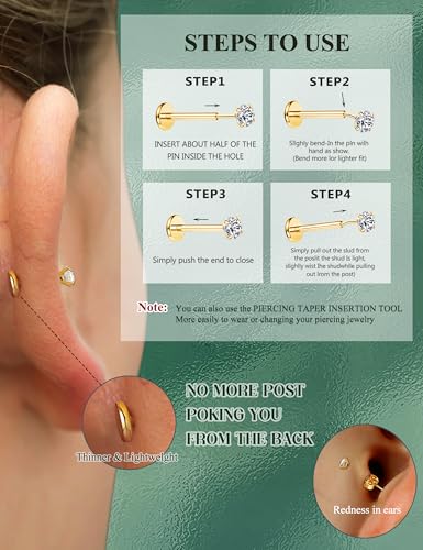 • 【316L Surgical Steel – Hypoallergenic & Fade-Free】 The threadless earrings set is crafted from medical-grade 316L surgical steel—nickel-free, lead-free, waterproof and tarnish-proof. These flat back earrings hypoallergenic are safe for new or healed piercings and all sensitive skin