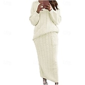 More information about Women's Warm Fashion Streetwear Skirt Sets Bolero Top Long Sleeve Crew Neck Solid Color Patchwork Outdoor Vacation Daily White Yellow Blue Fall Regular Fit