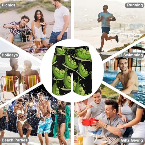 Cartoon Green Peas Men's Swim Trunks Board Shorts Beachshorts Swimsuits with Pockets Mesh Liner 4
