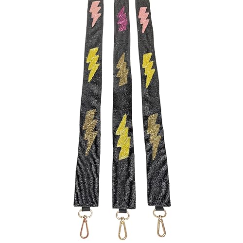 Beaded Purse Strap Lightening Bolts Handbags | Girls Trip Weekend Concert Gold Hardware for Clear Bag Purse Black Pink Purple Yellow Gold Colors 49” inches long 3