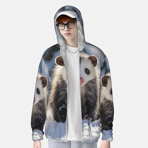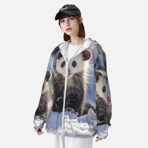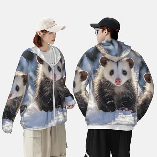 • UV Protection: Our Opossum In Snow long sleeve sun shirts features cutting-edge UPF 50+ technology, effectively blocking UV rays to ensure robust sun protection during your outdoor adventures. Designed with a hood to protect the neck, and other sun-exposed areas. Ideal for extended outdoor activities