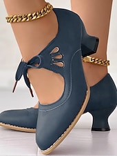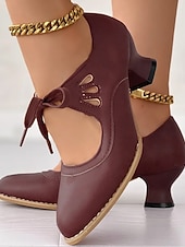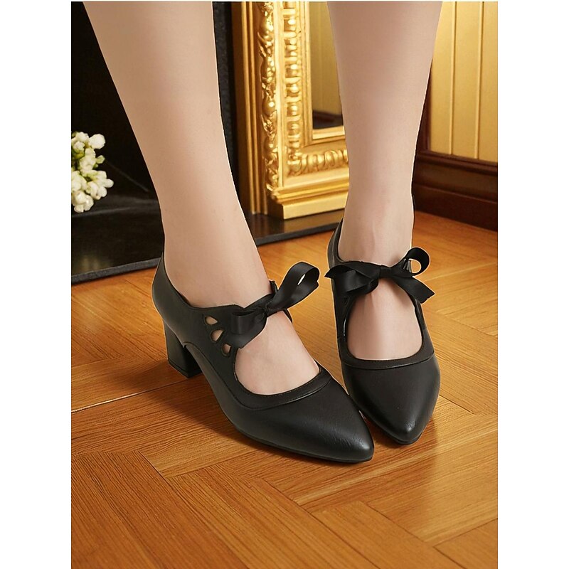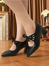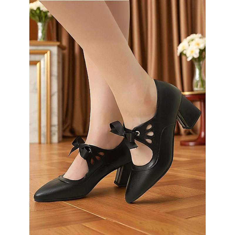 More information about Women's 1950s Style Red Mary Jane Heels with Bow – Retro Cutout Chunky Heel Pumps for Daily Vintage Wear and Swing Dance