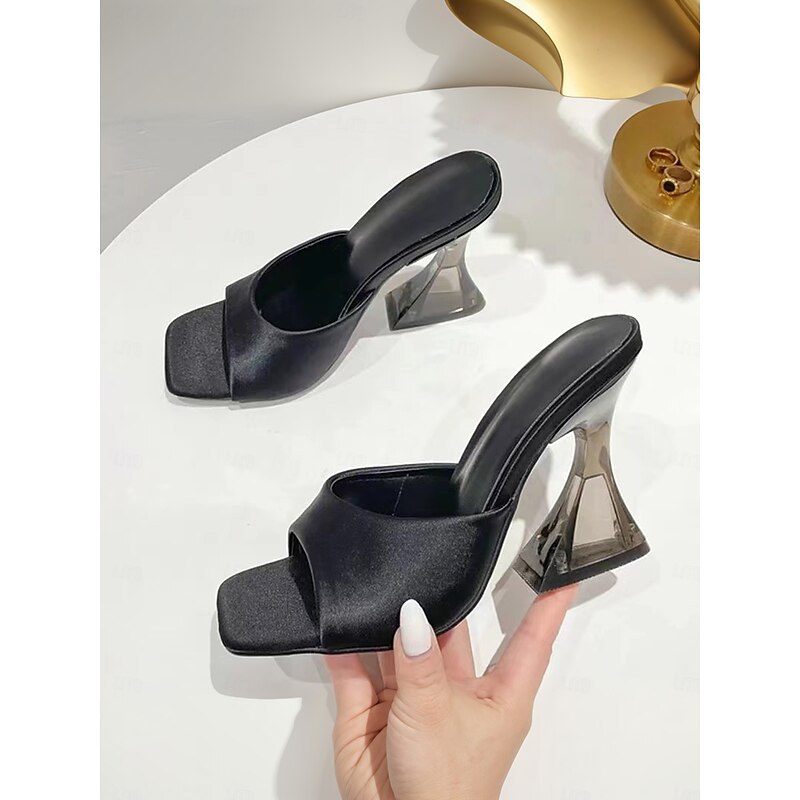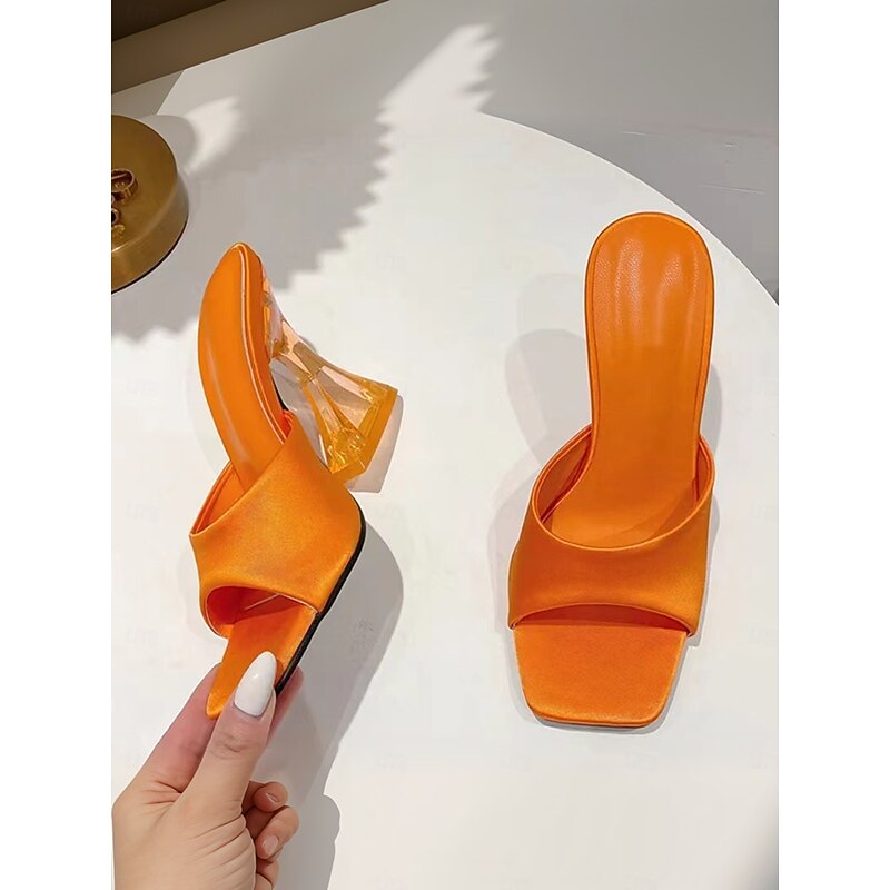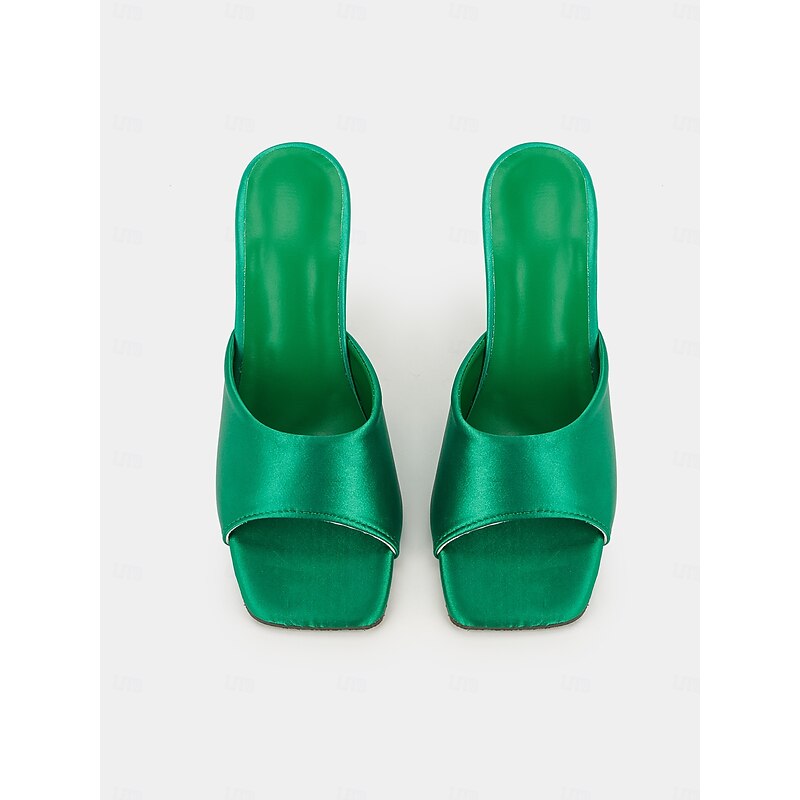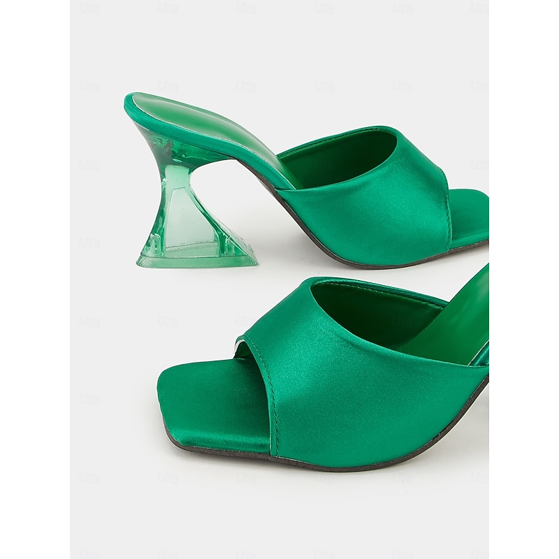 More information about Green Satin Open-Toe Mules with Transparent Block Heels for Women - Chic Summer Party Shoes