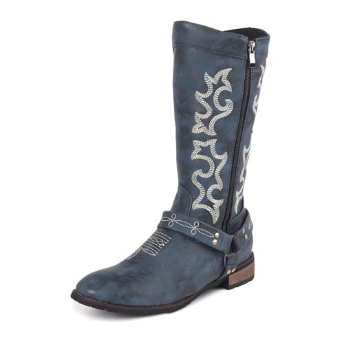 Cowboy Boots for Women,Womens Mid Calf Western Cowgirl Boots with Classic Embroidery, Round Toe Stitched Side Zipper Pull On Retro Design Fall Boot for Women Winter Spring 4