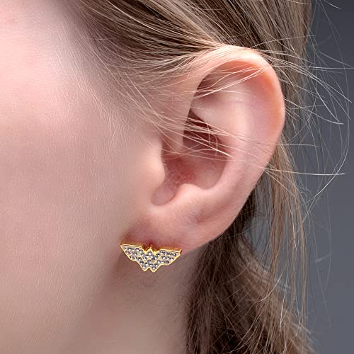 Officially Licensed Hypoallergenic DC Comics Women's Wonder Woman Gold Plated Logo with Clear Gem Stud Earrings, One Size 4