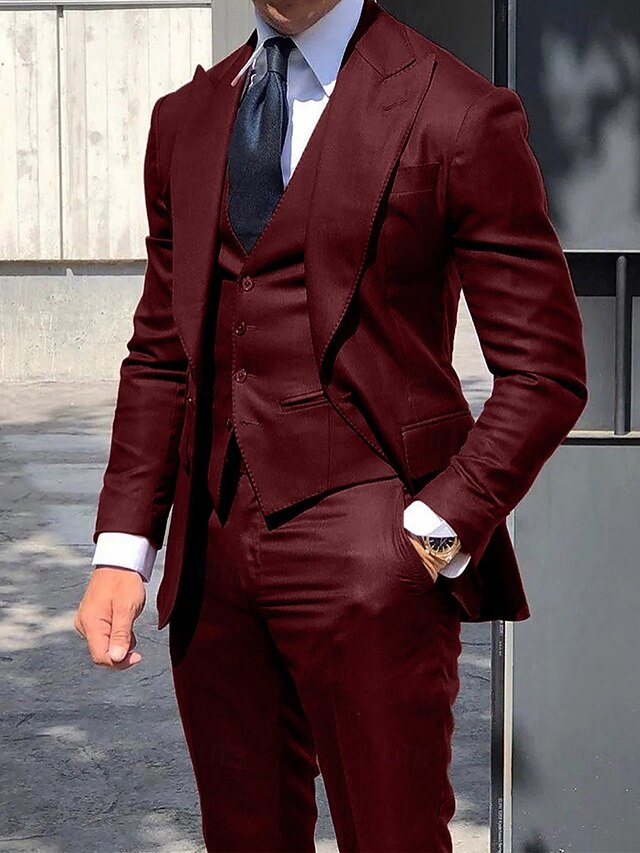 $136.99 - Men's Wedding Party Suits Peak Burgundy Royal Blue Solid Colored Tailored Fit 3 Piece Single Breasted One-button 2025. Shop for cheap Formal Suits online? Buy at lightinthebox.com on sale today!