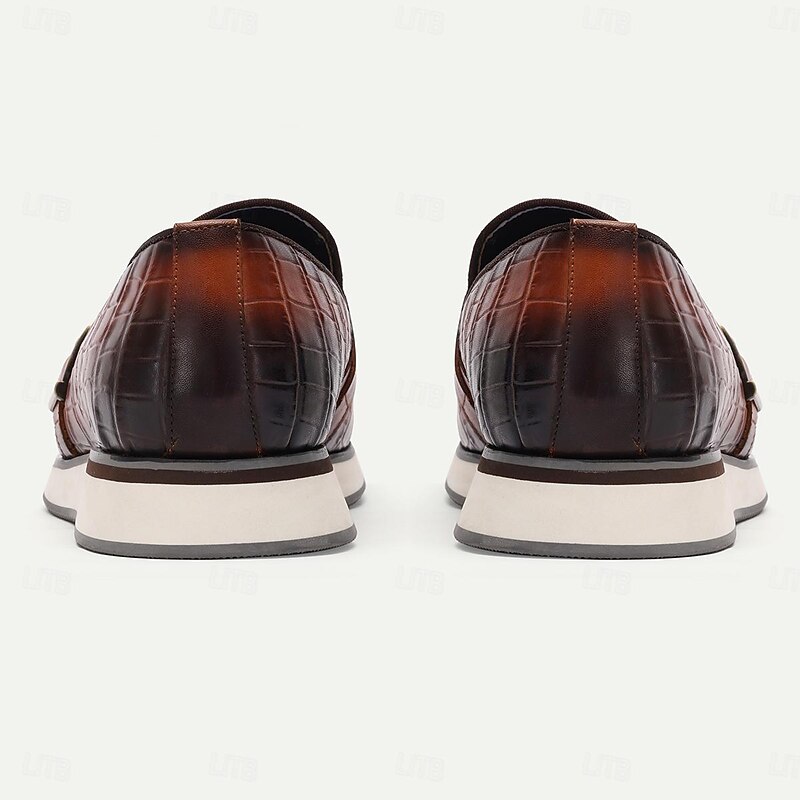 Men's Loafers Leather Black Brown Crocodile Pattern Metal Buckle 1