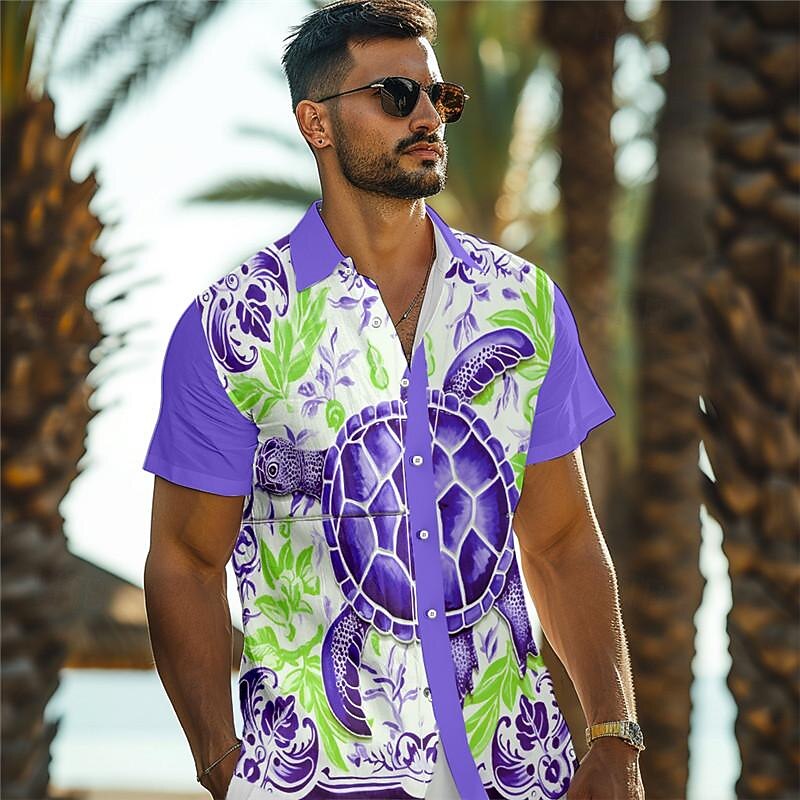 More information about Men's Tropical Turtles Shirt Summer Hawaiian Shirt Aloha Shirt Short Sleeve Shirt Turndown Vacation Hawaiian Outdoor Vacation Hawaiian Blue Sky Blue Purple S M L