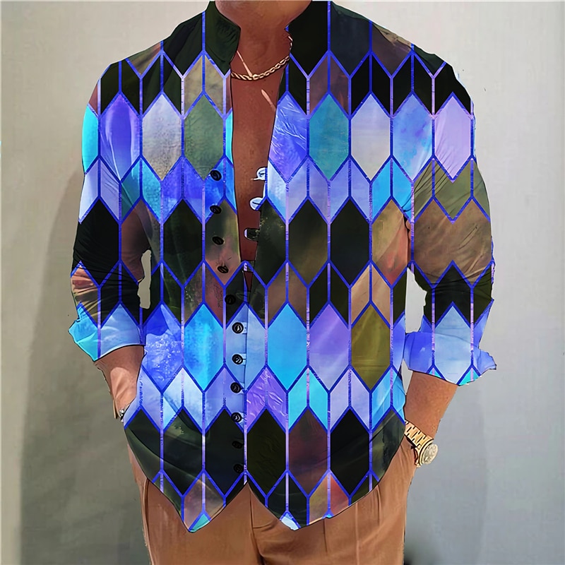 More information about Men's Floral Color Block Shirt Button Up Shirt Long Sleeve Fashion Streetwear Designer Outdoor Casual Daily Summer Spring Fall Stand Collar Print Red Blue Light Purple Purple Green