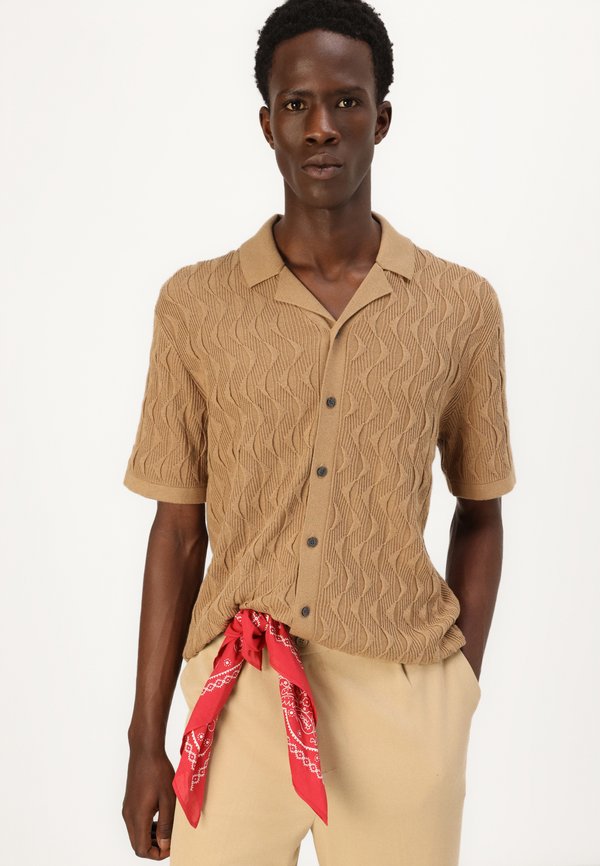 Geometric Stitch Button-Through Sweater Polo - Cardigan - tigers eye 6
