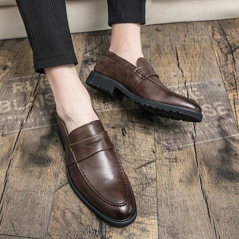 HOT ! Loafers for Men Round Burnished Toe Vegan Leather Penny Loafers Comfortable Flexible Resistant Wedding Slip On