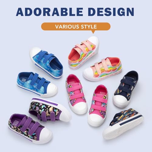 • EASY ON AND OFF: Designed with adjustable straps, these toddler canvas shoes are easy for kids to put on and take off independently, ensuring a snug fit for various foot shapes and giving parents peace of mind