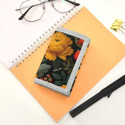 Floral Yellow Kids Wallet for Boys Girls Youth, Compact Fabric 4.9×2.9 in 1