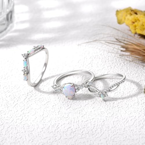 HOT ! Pear Shaped Natural Opal Engagement Ring Set for Women, 925 Sterling Silver 1 Carat Opal Wedding Band Bridal Ring Set Anniversary Birthday Jewelry Gifts for Women