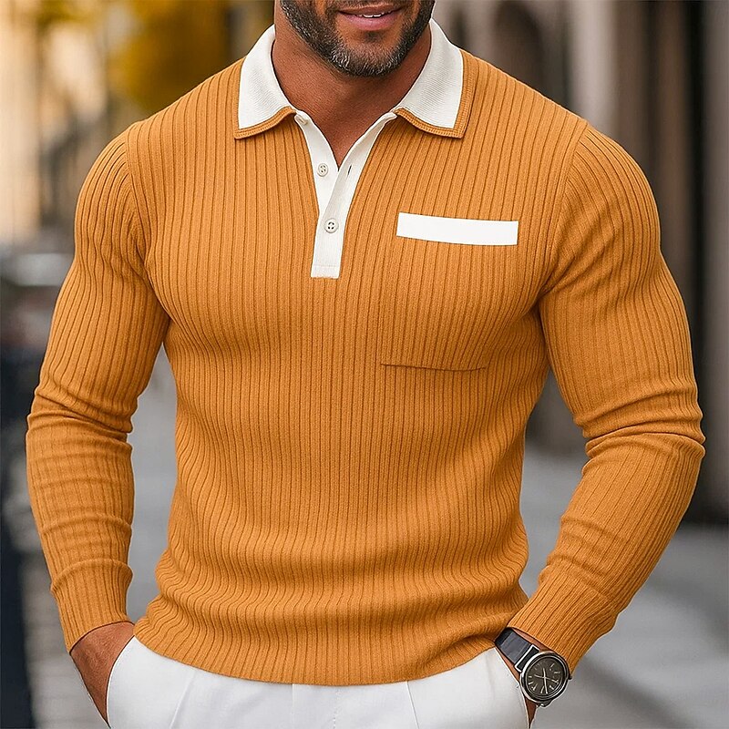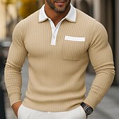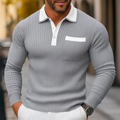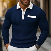 More information about Men's Polo Shirts Rib Knit Top Business Casual Ribbed Polo Collar Long Sleeve Fashion Basic Solid Color Knitting Spring Fall Winter Slim Fit Light Blue Navy Blue Orange Khaki Gray Polo Shirts