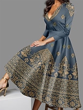 More information about Women's Midi Dress Vintage Dress Casual Dress Winter Dress Swing Dress Vintage Ethnic Tribal Formal Vacation Party Regular Fit Tribal 3/4 Length Sleeve V Neck Blue Purple Green Fall Winter