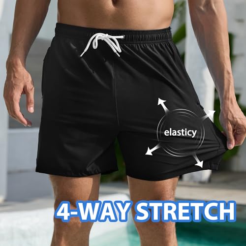 • 【Mens Swim Trunks 2 in 1 Compression Lining】:Our swim trunks are two in one, 5 inch inseam.With an compression inner lining, a double layer mesh free design, which effectively prevents the outer fabric from rubbing against the skin. It also prevents sand from scratching the skin to protect the skin and prevent the shorts from sticking to the skin when soaked. It is as breathable, comfortable, and elastic as your second skin