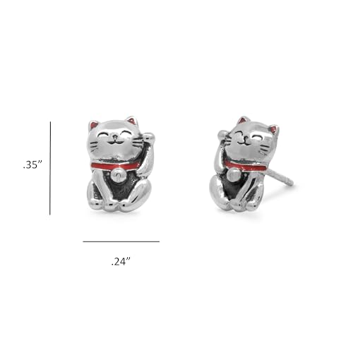 Boma Jewelry Sterling Silver Maneki Japanese Good Luck Cat Stud Earrings with Hand Painted Enamel 6