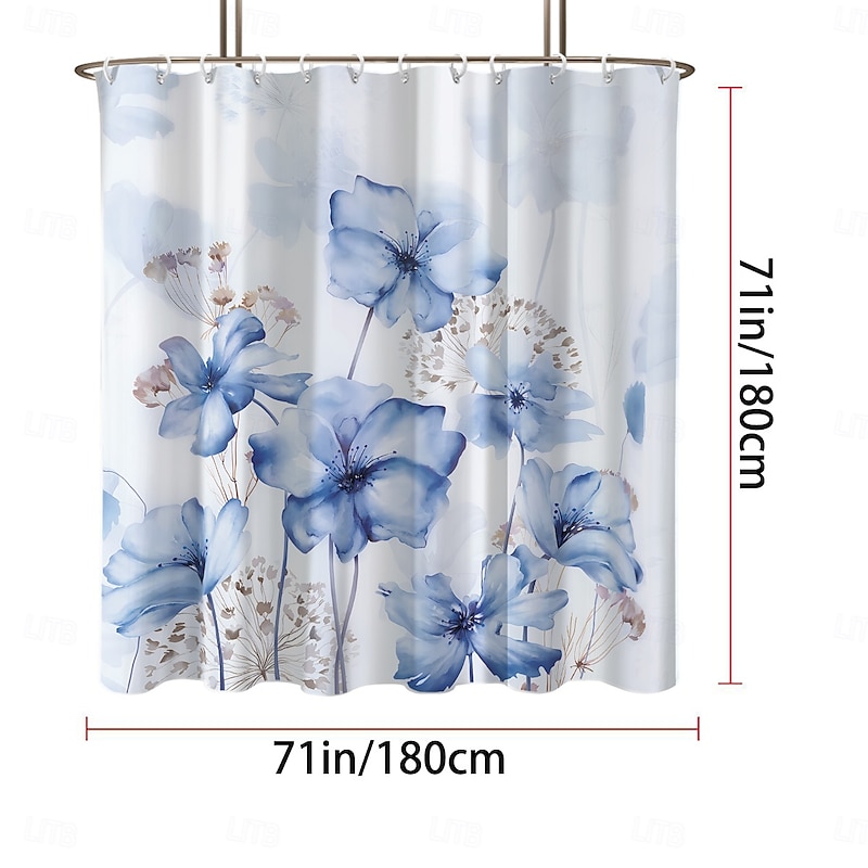 Shower Curtain with Hooks 180cm*180cm(70"*70") Polyester Washable Waterproof Pattern Bathroom Bathtub Decor Botanical Floral 13