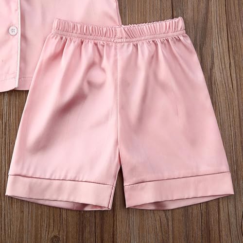 Toddler Baby Girl Boy Satin Pajamas Set 2Pcs Button Down Pjs Solid Color Short Sleeve Silk Top And Shorts Sleepwear 4